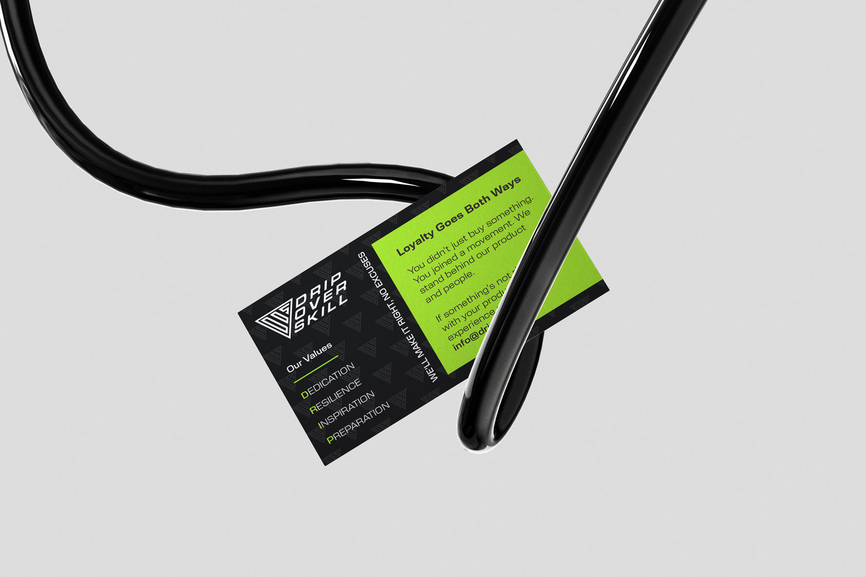 Every surface was treated as an opportunity to reinforce the brand, integrating DOS values and taglines throughout the exterior and inner flaps of the box. To extend the experience further, I proposed and designed custom branded tissue paper featuring a seamless DOS logomark pattern, along with a badge-style logo for the sealing sticker. The sticker incorporated the brand’s DRIP values: Dedication, Resilience, Inspiration and Preparation; all encircling the core DOS mark to create a consistent unboxing experience.
