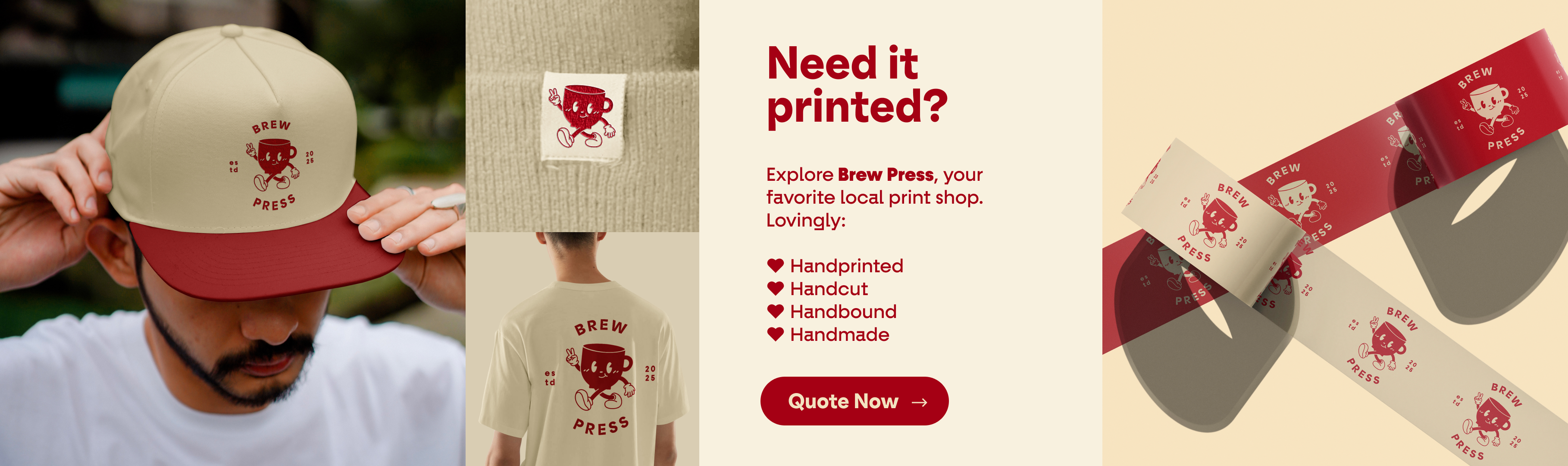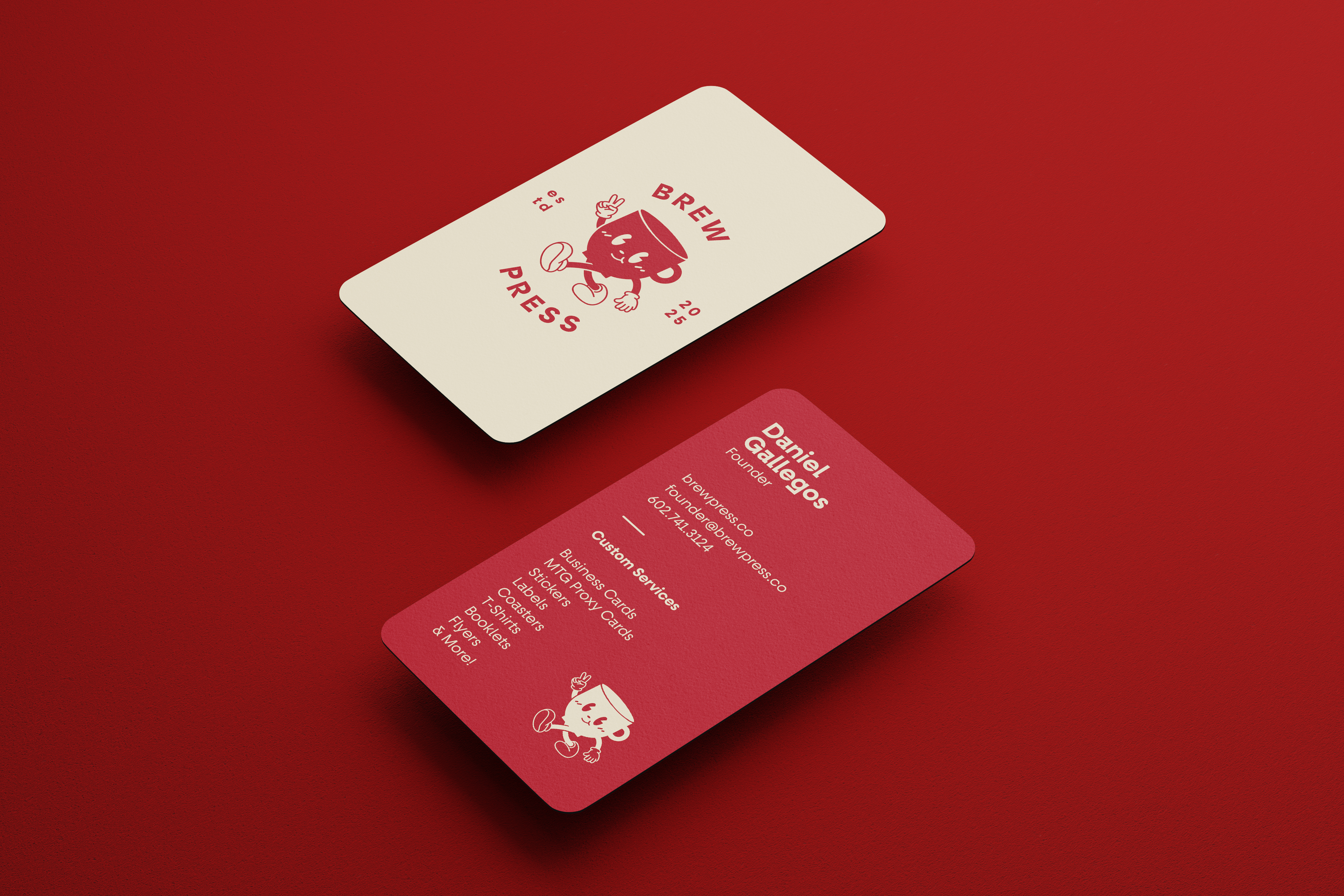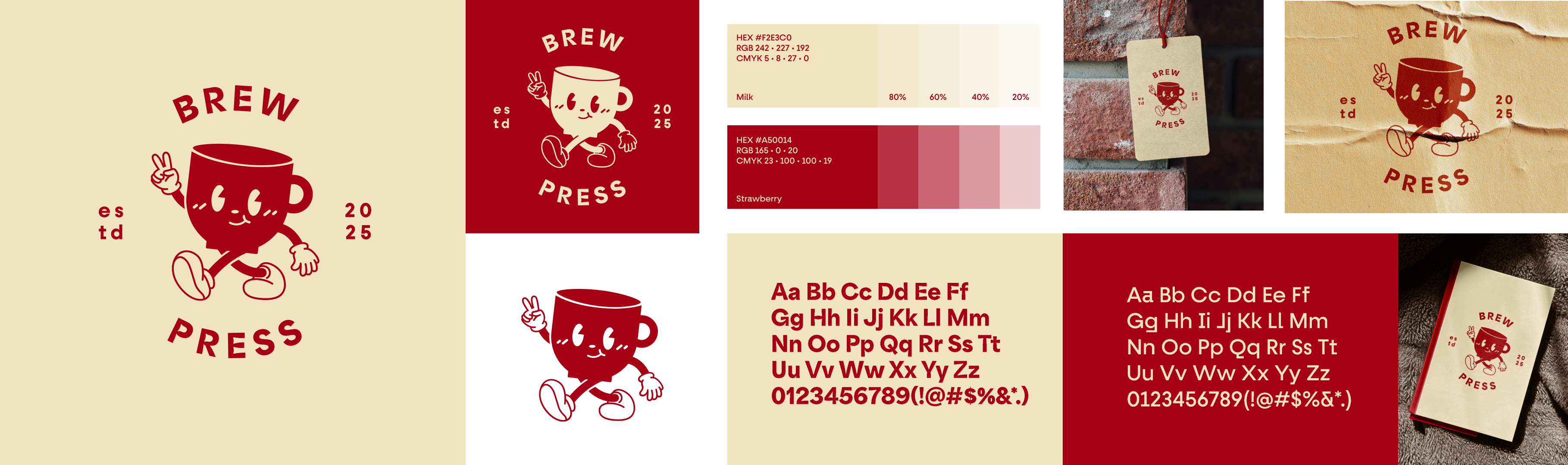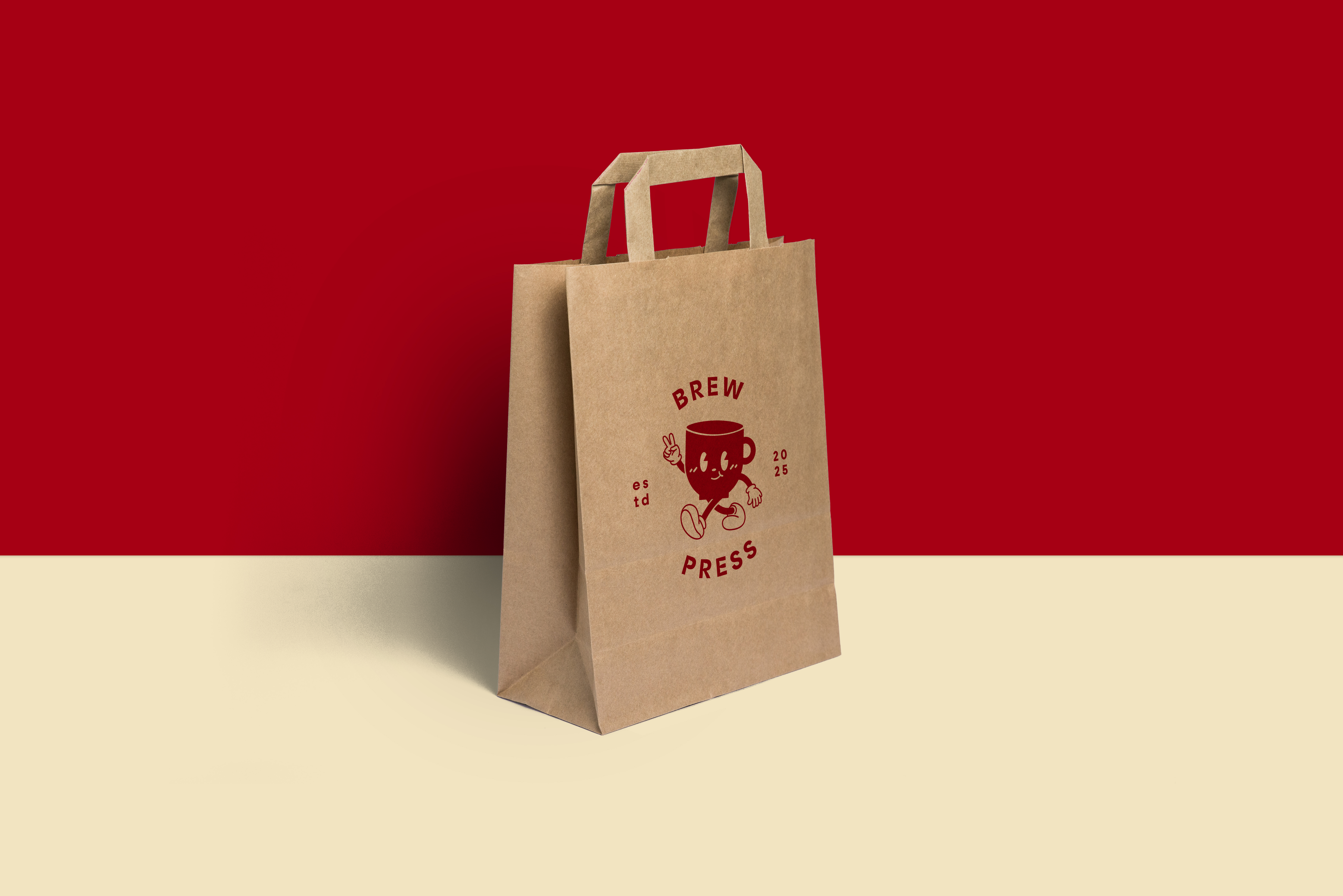 To accommodate the diverse range of deliverables Brew Press provides to its clients, a unified suite of branded packaging was developed. This included custom-branded packaging tape, mailers, stickers, and paper bags, all designed to reflect the brand's playful yet professional identity. The packaging prominently features the signature red and cream color palette, paired with the mascot logo to ensure immediate brand recognition. Each element was designed with versatility and practicality in mind, balancing functionality with aesthetic appeal. From the bold, eye-catching tape used to seal shipments to the detailed sticker designs that add a personalized touch, every piece reinforces the thoughtful, handcrafted ethos of Brew Press while creating a memorable unboxing experience for its customers.