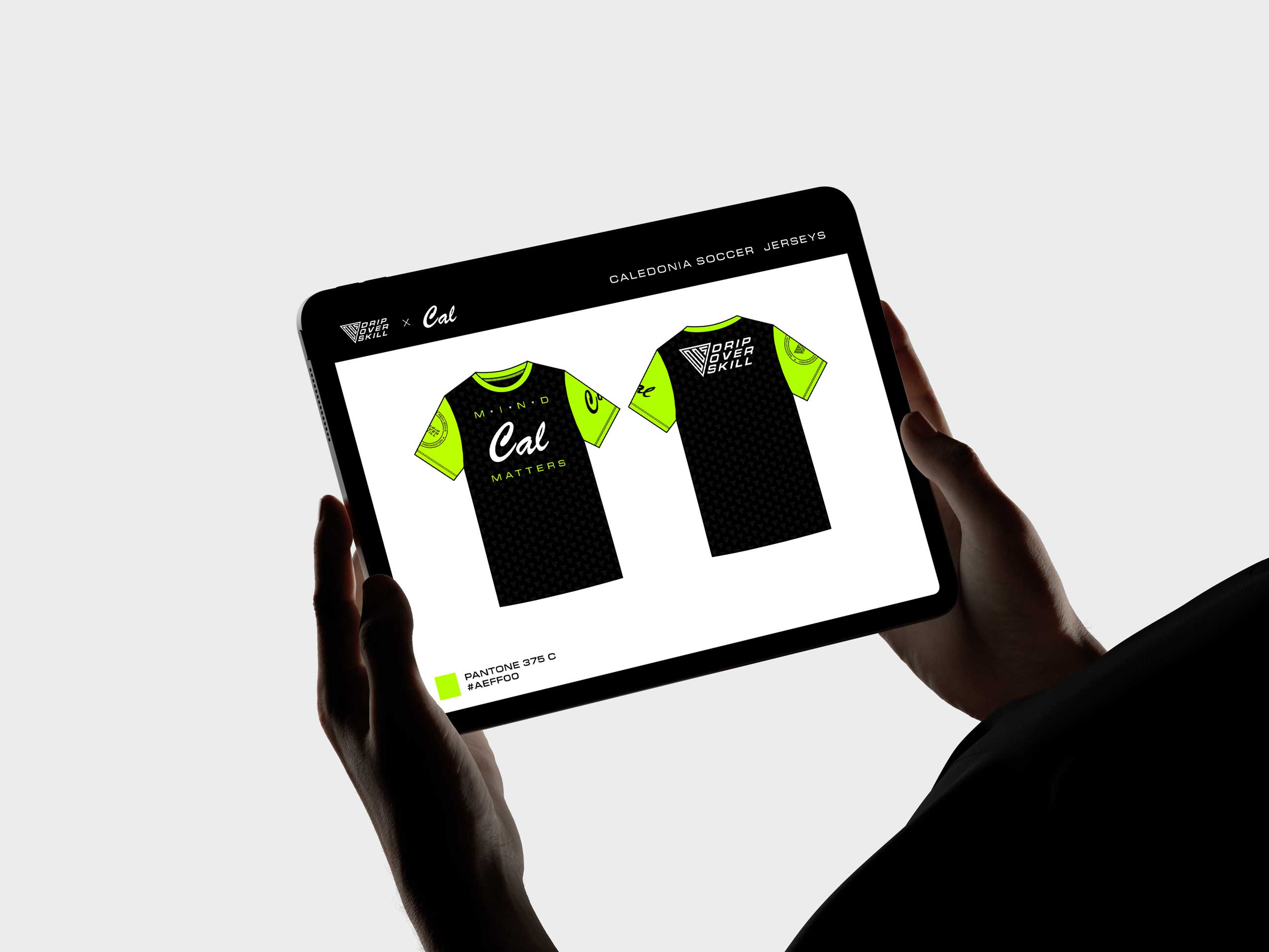 The introduction of lime green extended naturally into the design of the DOS-sponsored pre-workout jerseys for the Caledonia Girls’ Soccer team. I designed multiple jersey concepts that prominently featured the DOS logo co-branded with the Cal identity, ensuring clear visibility and balanced brand equity for both partners.
