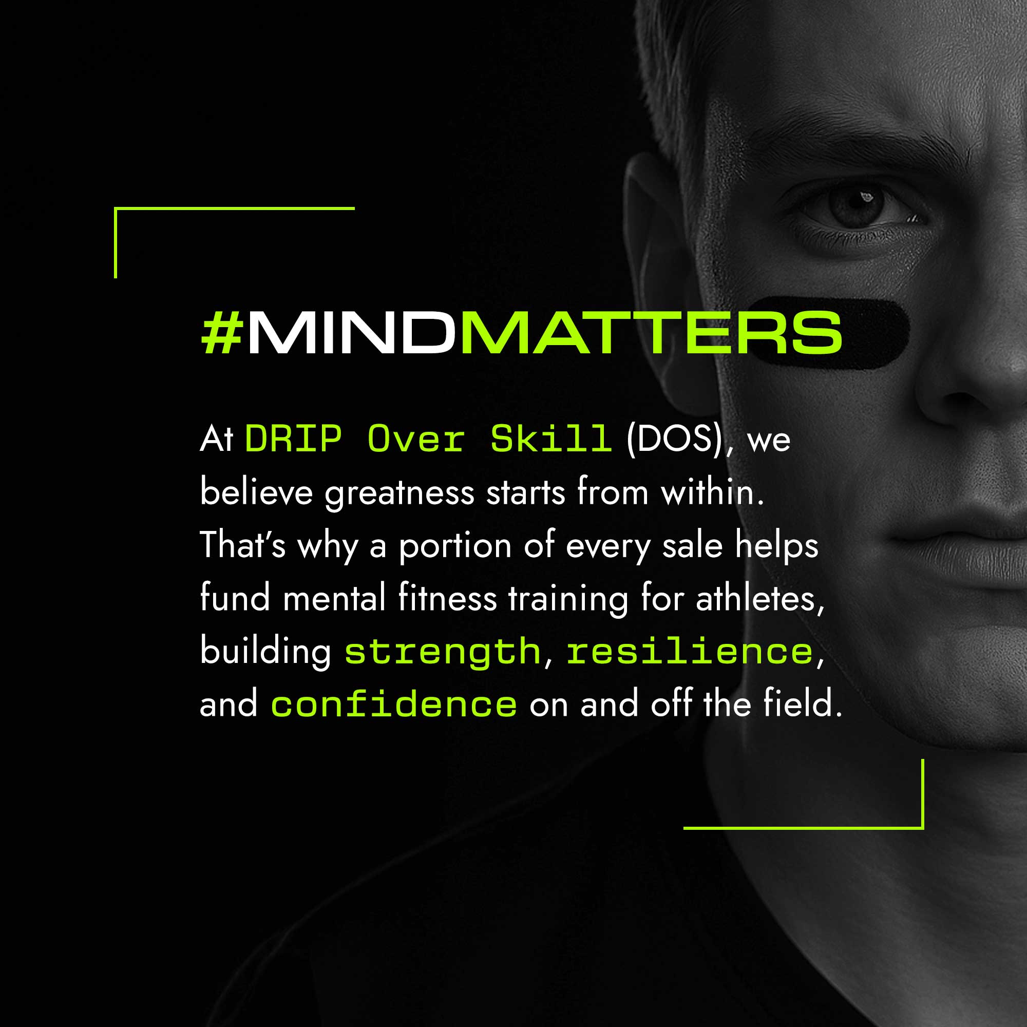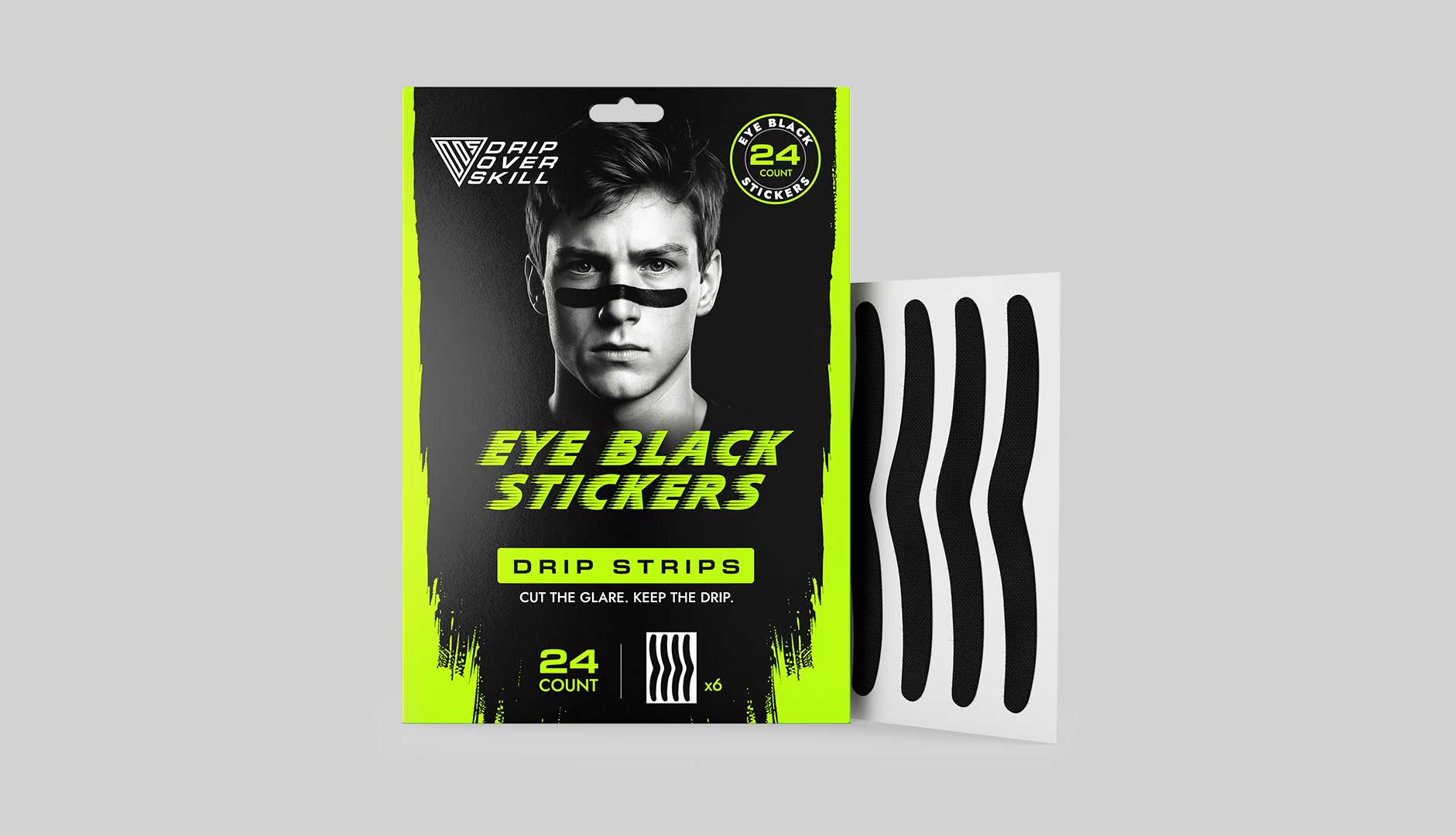 One of the brand’s most immediate gaps was high-quality product photography. Working within tight budget and timeline constraints, I developed a small set of male model archetypes to serve as consistent visual representatives for the brand, beginning with the DOS Drip Strips, an adhesive eye black product that differs from traditional balm-based applications.