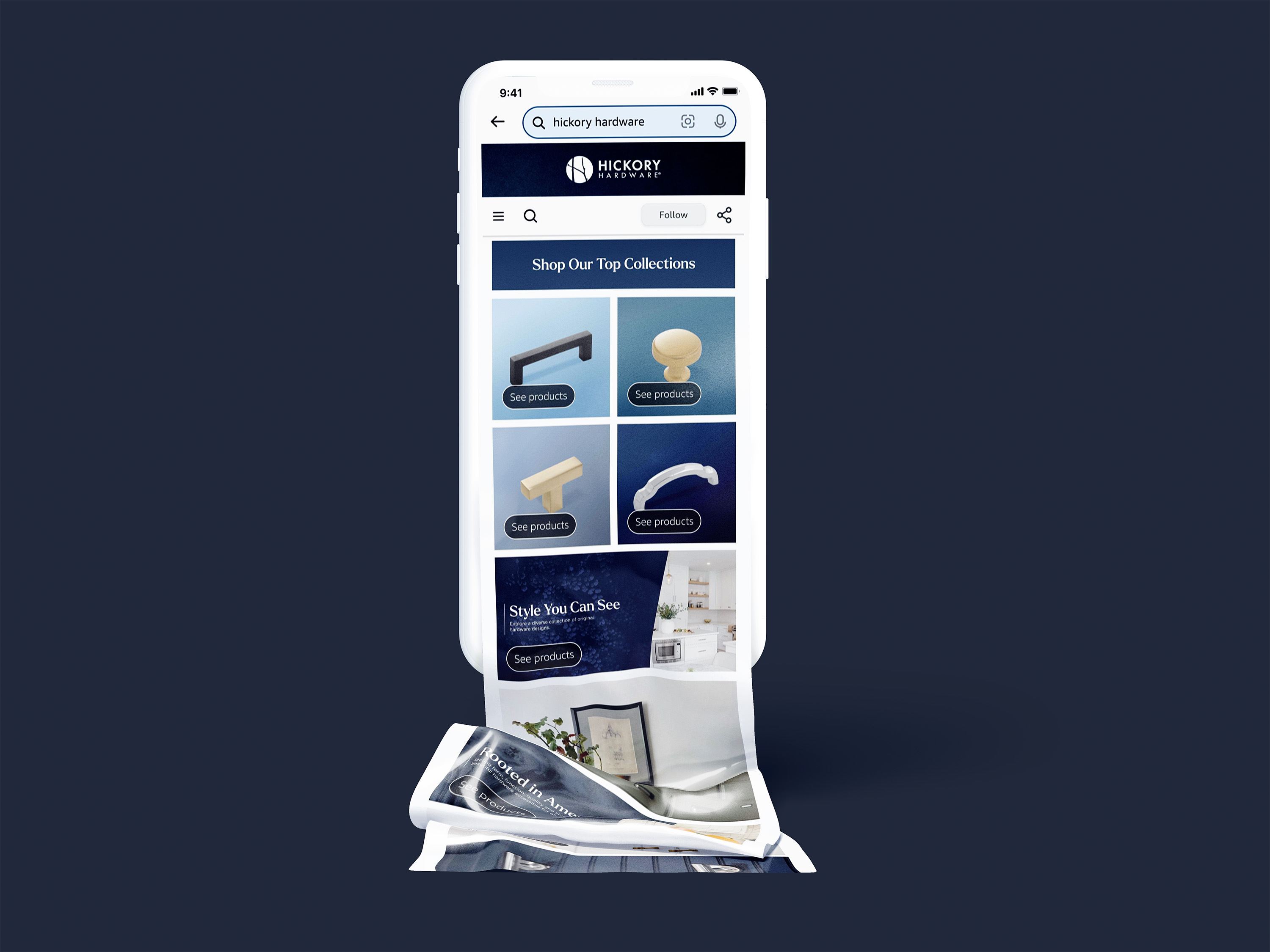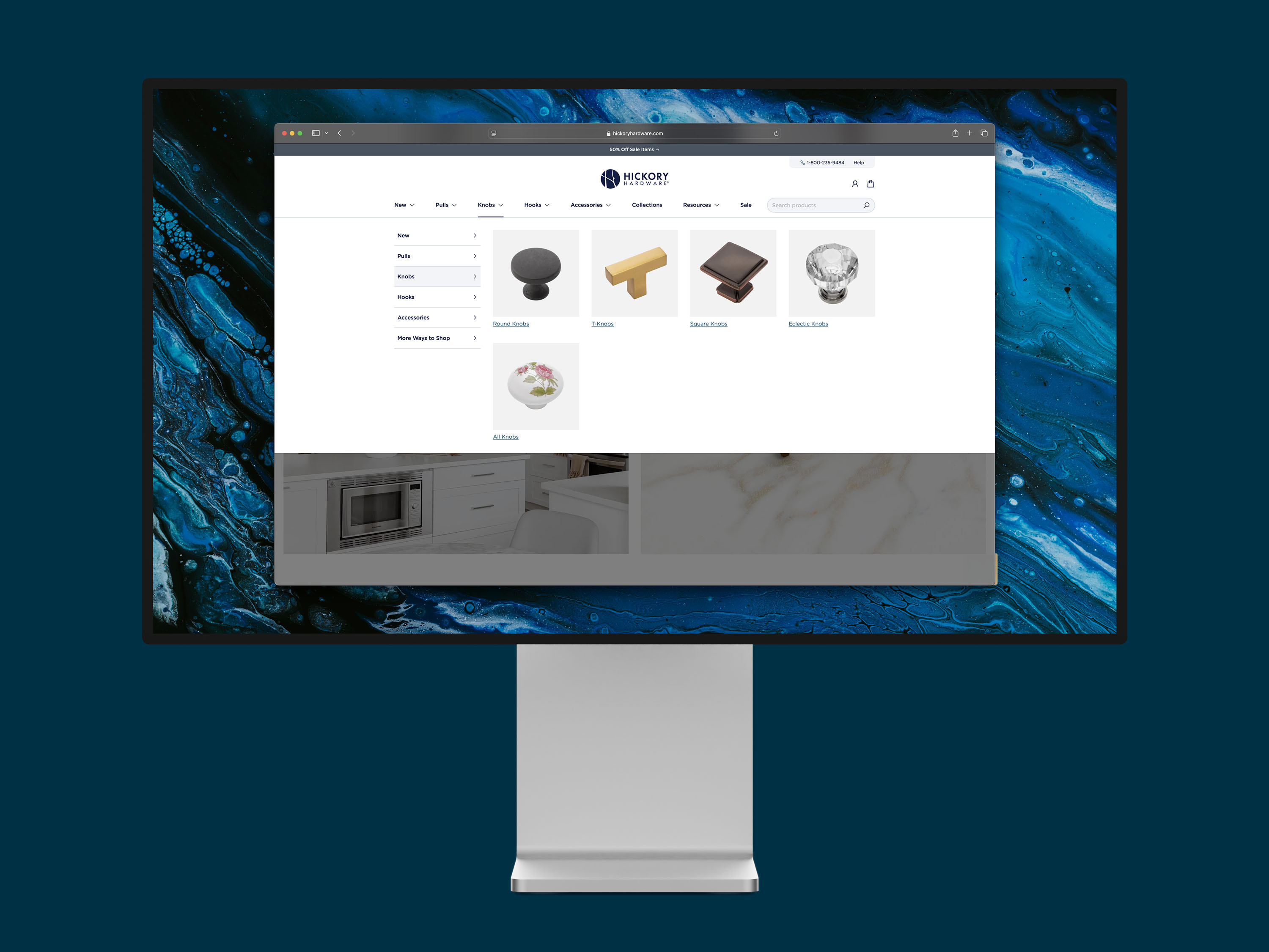 In contrast, Hickory Hardware's navigation emphasized visuals to educate buyers as they shopped. Icons illustrated categories such as "T-Knobs," "Cup Pulls," and "Lip Pulls," bridging the knowledge gap for less experienced customers while showcasing the brand's extensive product range. This user-focused approach ensured a more intuitive and engaging shopping experience across all brands.