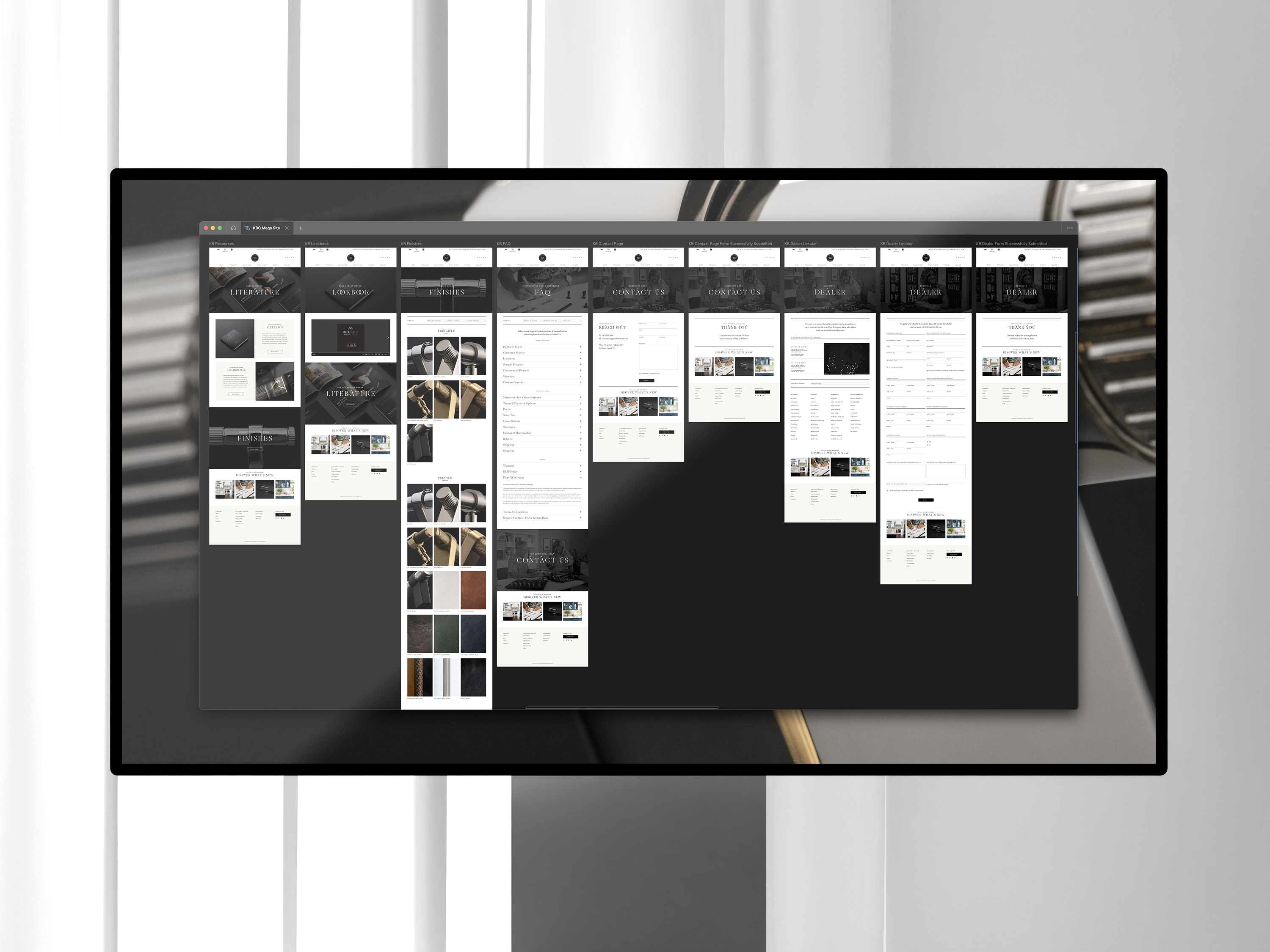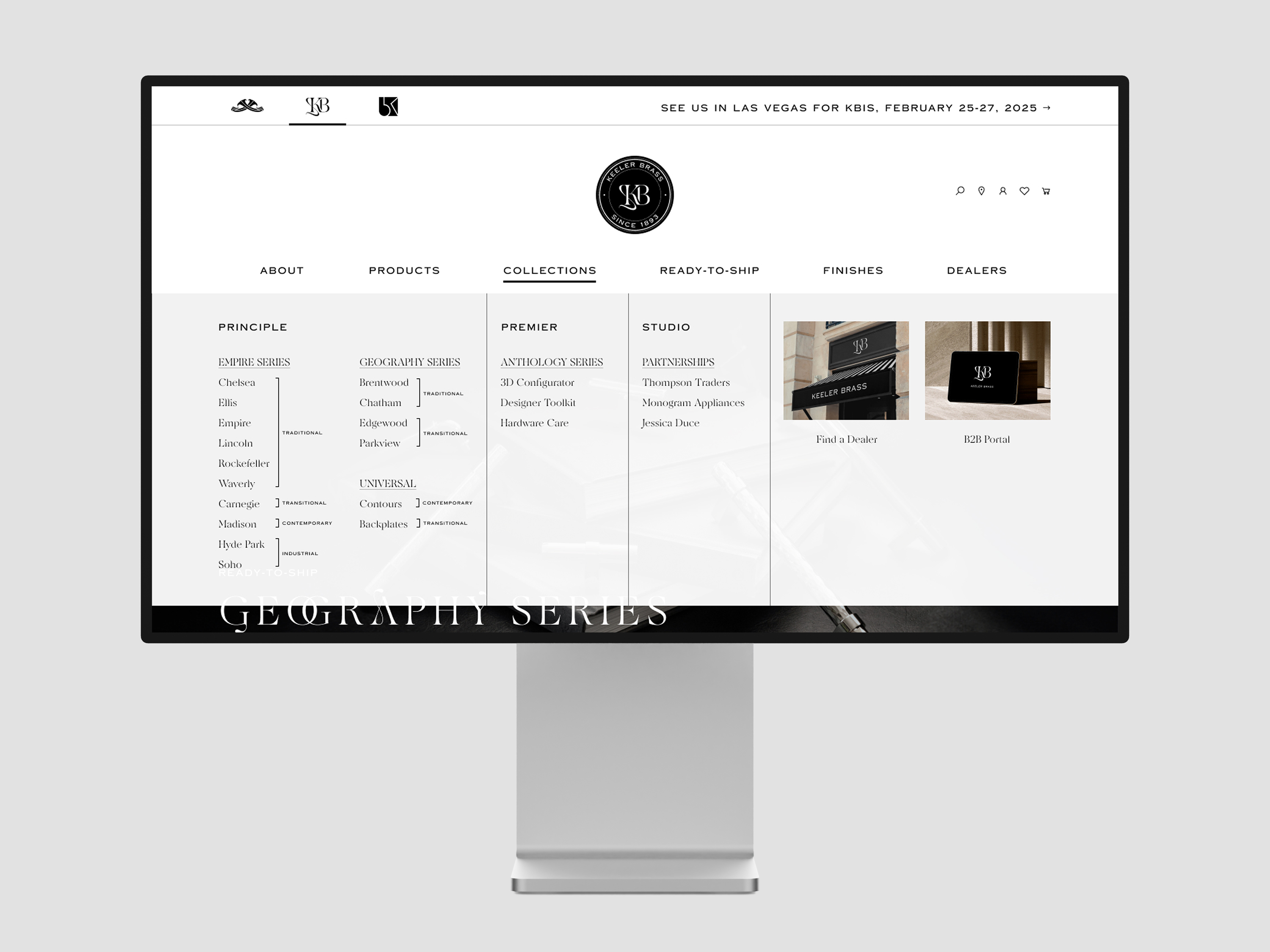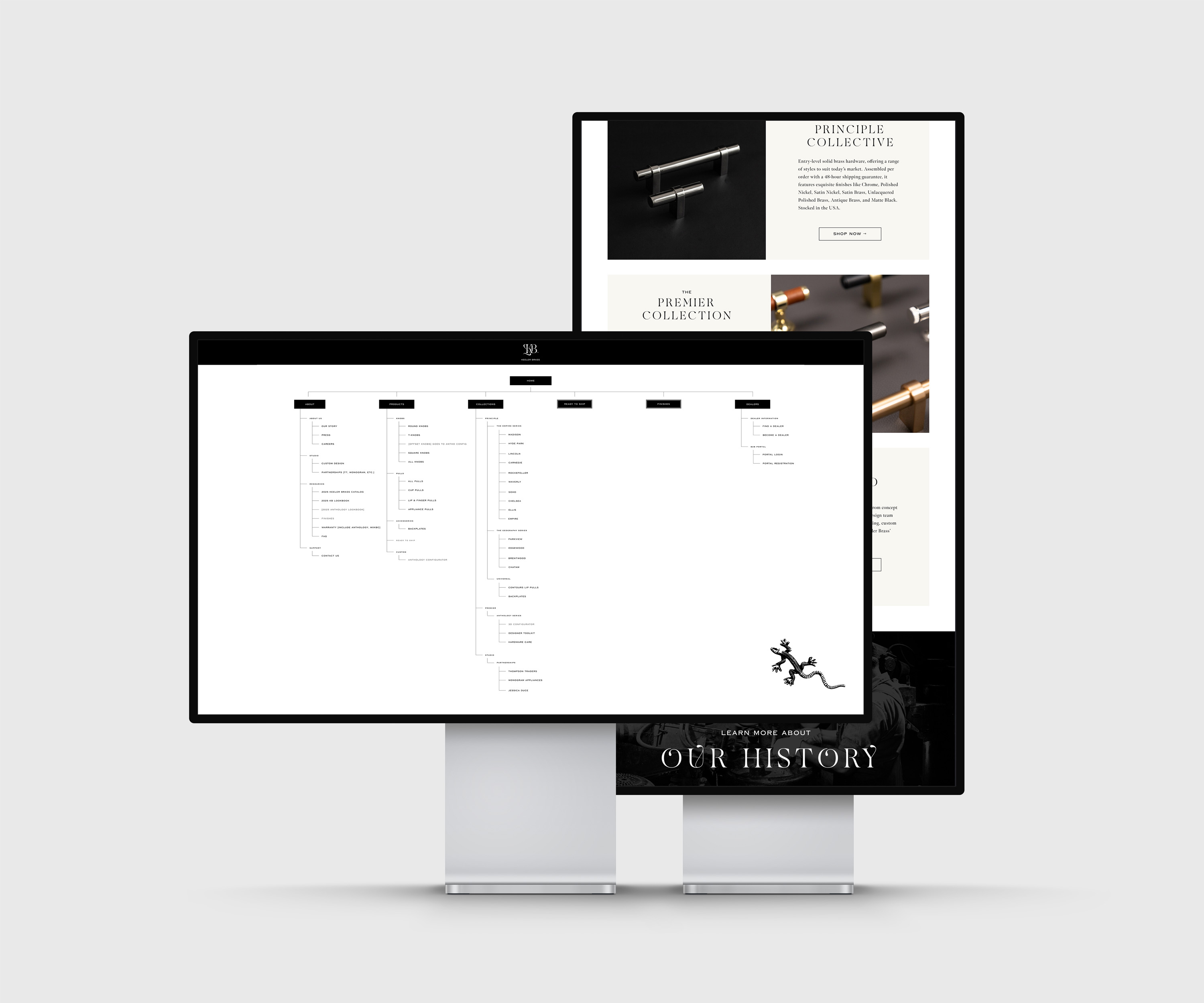 For Keeler Brass, the luxury arm, the navigation was text-based and minimalist, with manageable lists of collections. To aid unfamiliar users, hover states revealed style categories like Contemporary, Traditional, or Industrial, offering clarity and context.