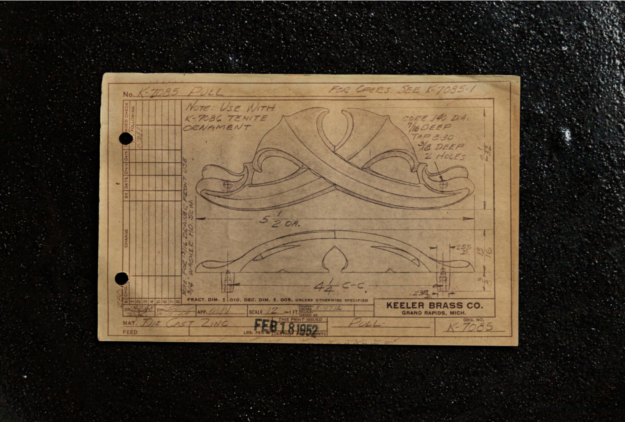 However, I am pleased to affirm that the final iteration of the KBC logo has garnered satisfaction from all parties involved, ranging from the CEO to departmental directors and the designer. Rooted in heritage, the design draws inspiration from K7085, a part found on page 124 of Keeler’s 1953 edition of Modern Furniture Hardware. Further historical exploration unearthed an even earlier rendition dated February 18th, 1952, suggesting its original inception.