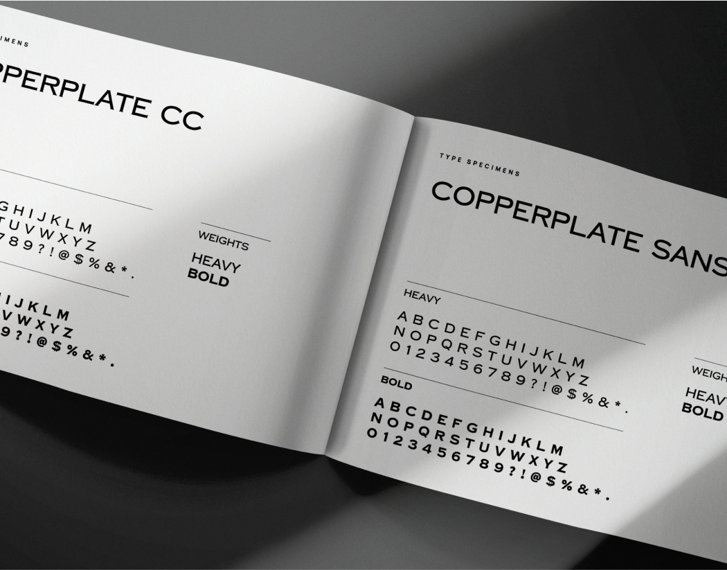The chosen typeface for our logo and brand is Copperplate CC, crafted by Owen Earl of Cowboy Collective. Inspired by the original plates found in the 1923 American Type Founders Specimen Book & Catalogue, Copperplate CC embodies a timeless elegance. While each type designer imbues their interpretation with unique nuances during digitization, Owen’s rendition stands out for its meticulous attention to detail, particularly in punctuation marks and numerals—a level of care often lacking in pre-installed versions of Copperplate.