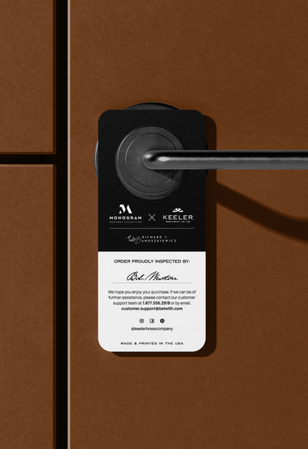 Richard brought many innovative ideas to the packaging design. One standout suggestion was a hanger tag to be draped around the appliance bar after installation. This tag would be personally signed by the installer as a mark of approval for the quality of both the hardware and the installation process.