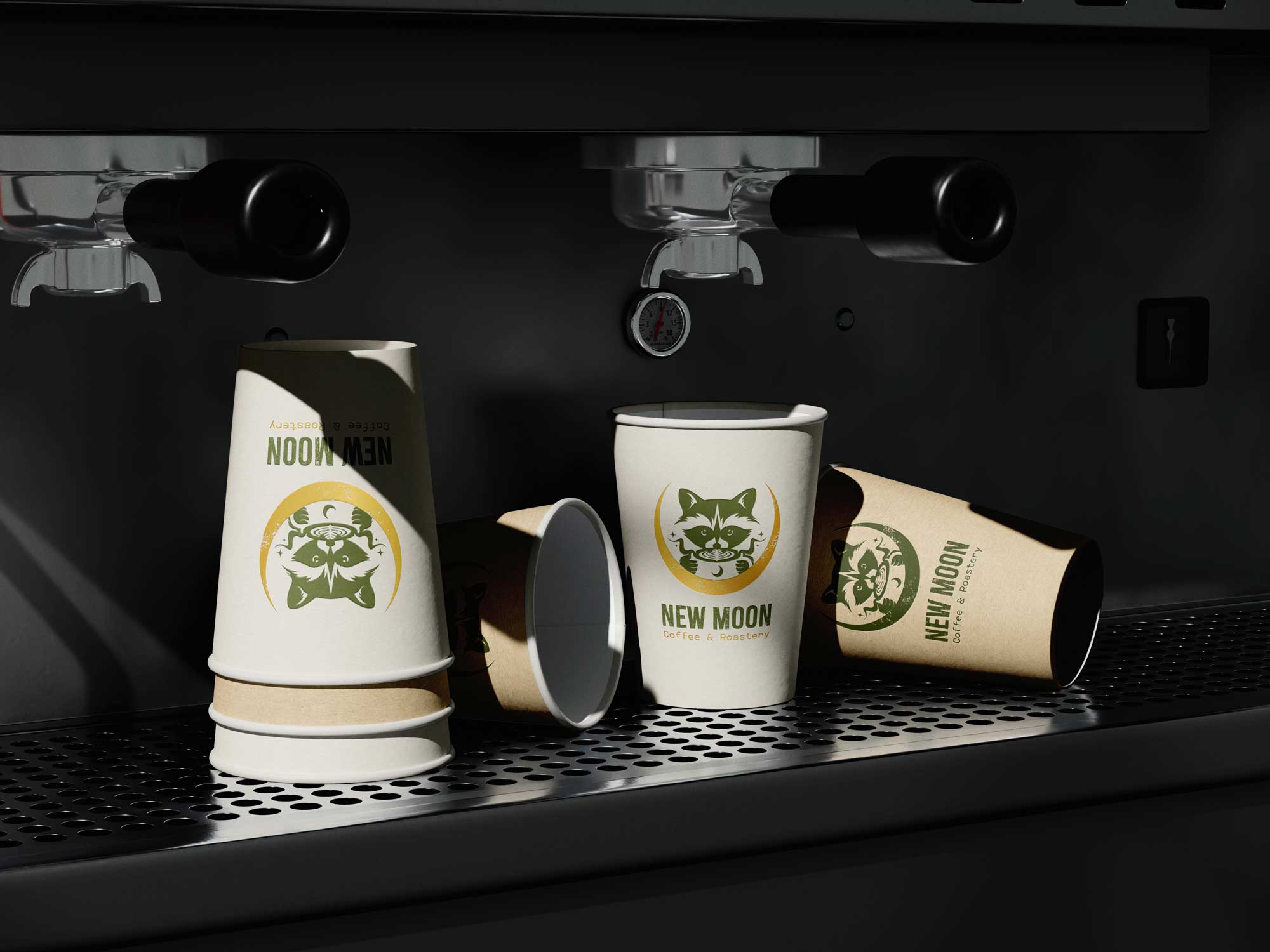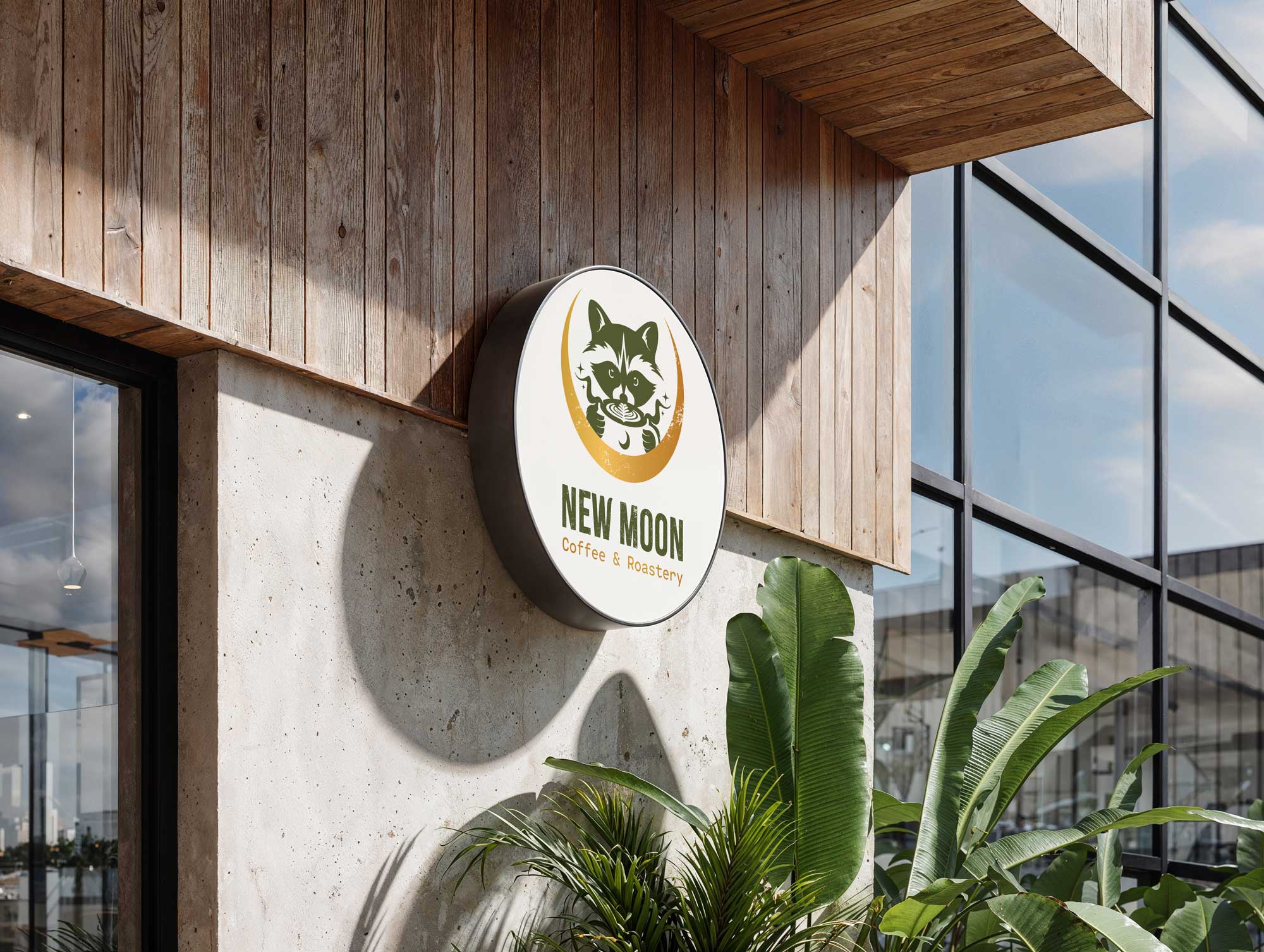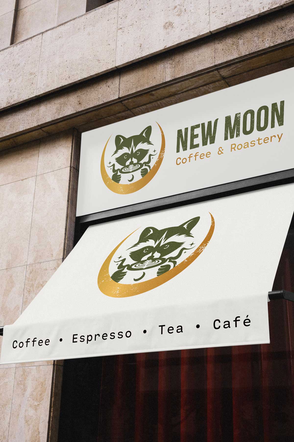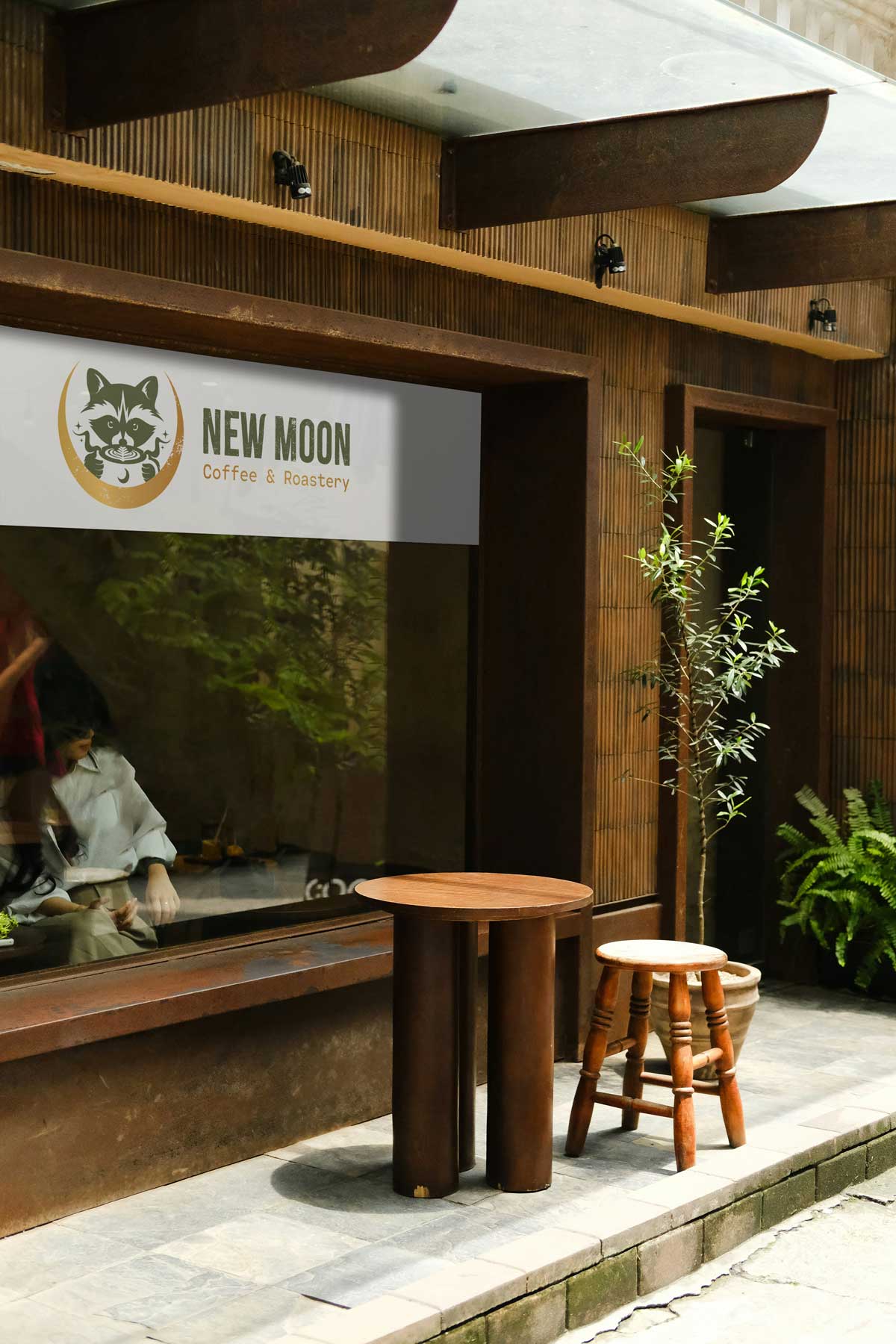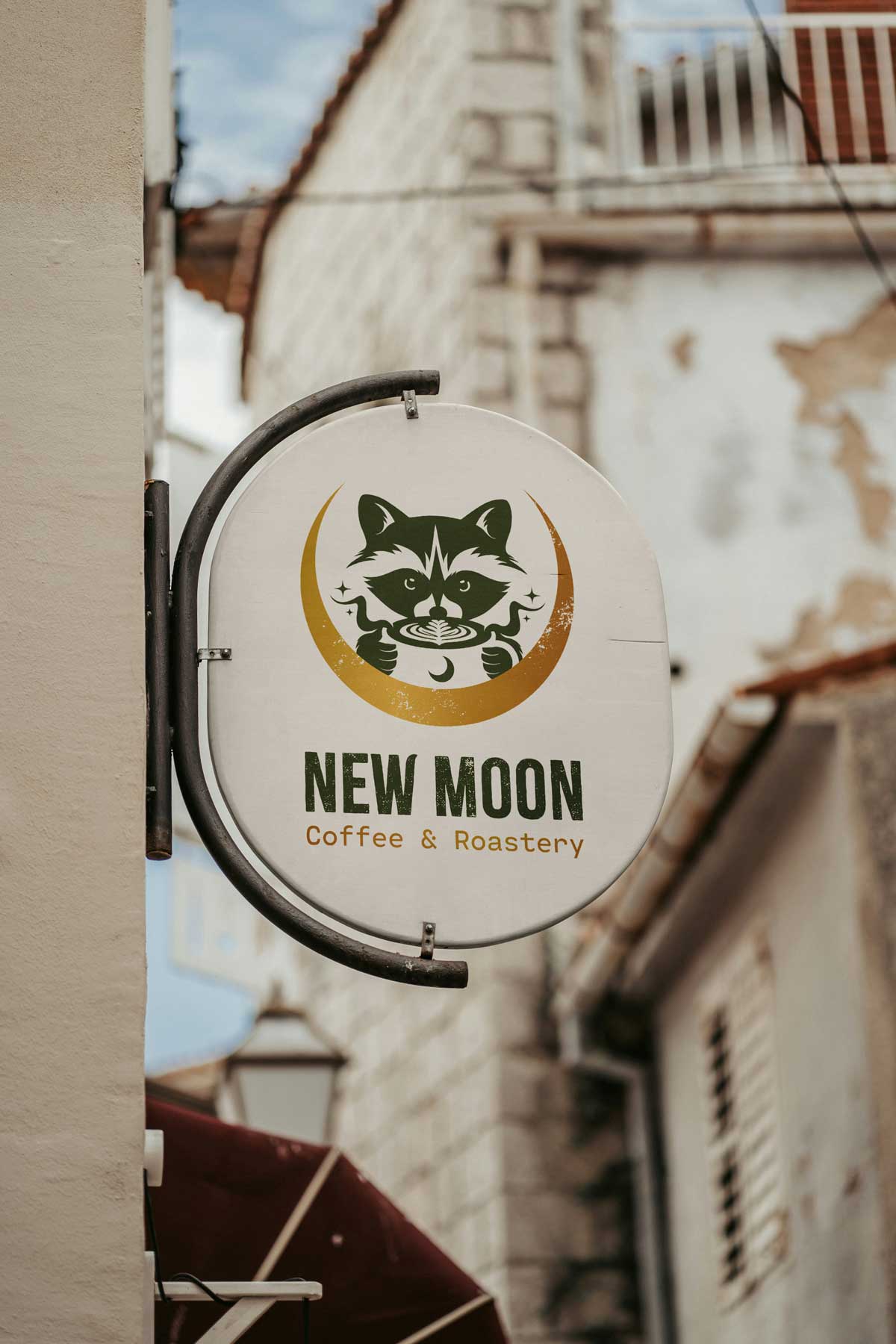 New Moon Coffee & Roastery approached us with a uniquely personal and visually offbeat request: to create a brand identity involving a raccoon with an element of coffee. The raccoon element was symbolic of the founder's spirit and values, while the moon and "new moon" phase in particular, represented transformation and new beginnings, both metaphors for her dream of building a community-rooted coffee shop.