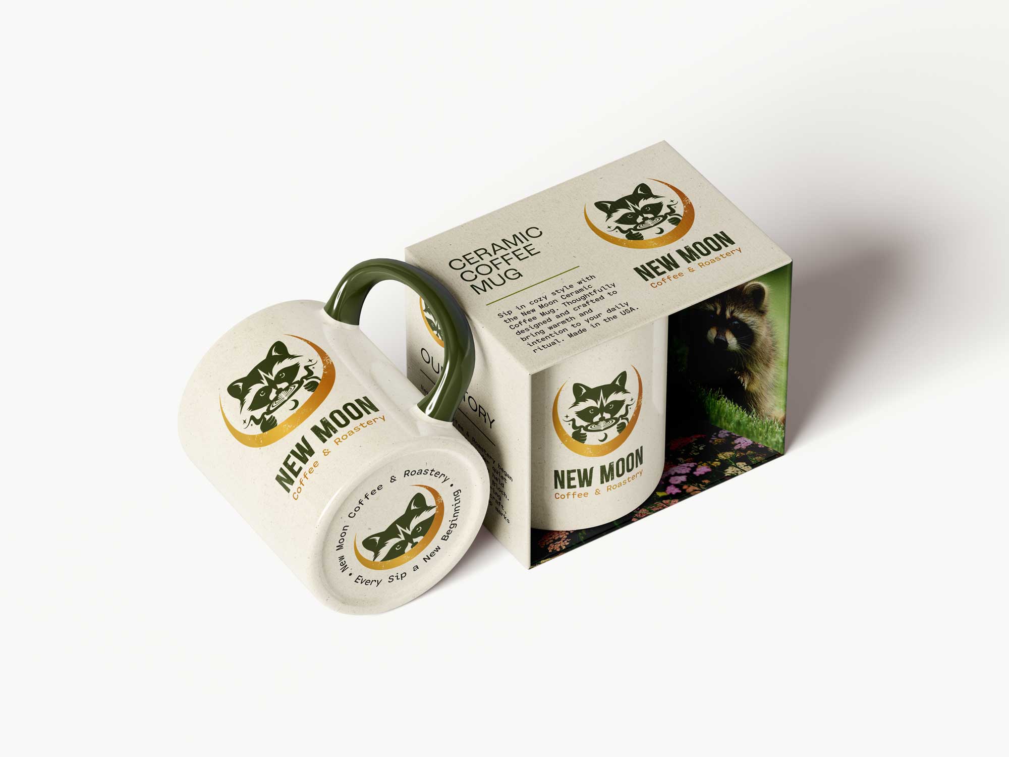 Designing the New Moon Coffee brand was a truly rewarding experience, the kind of project that reminds you why you love what you do. It’s not every day you’re asked to blend a raccoon, a crescent moon and a cup of coffee into a single logo, and even rarer to collaborate with a client as gracious, visionary and creatively open.